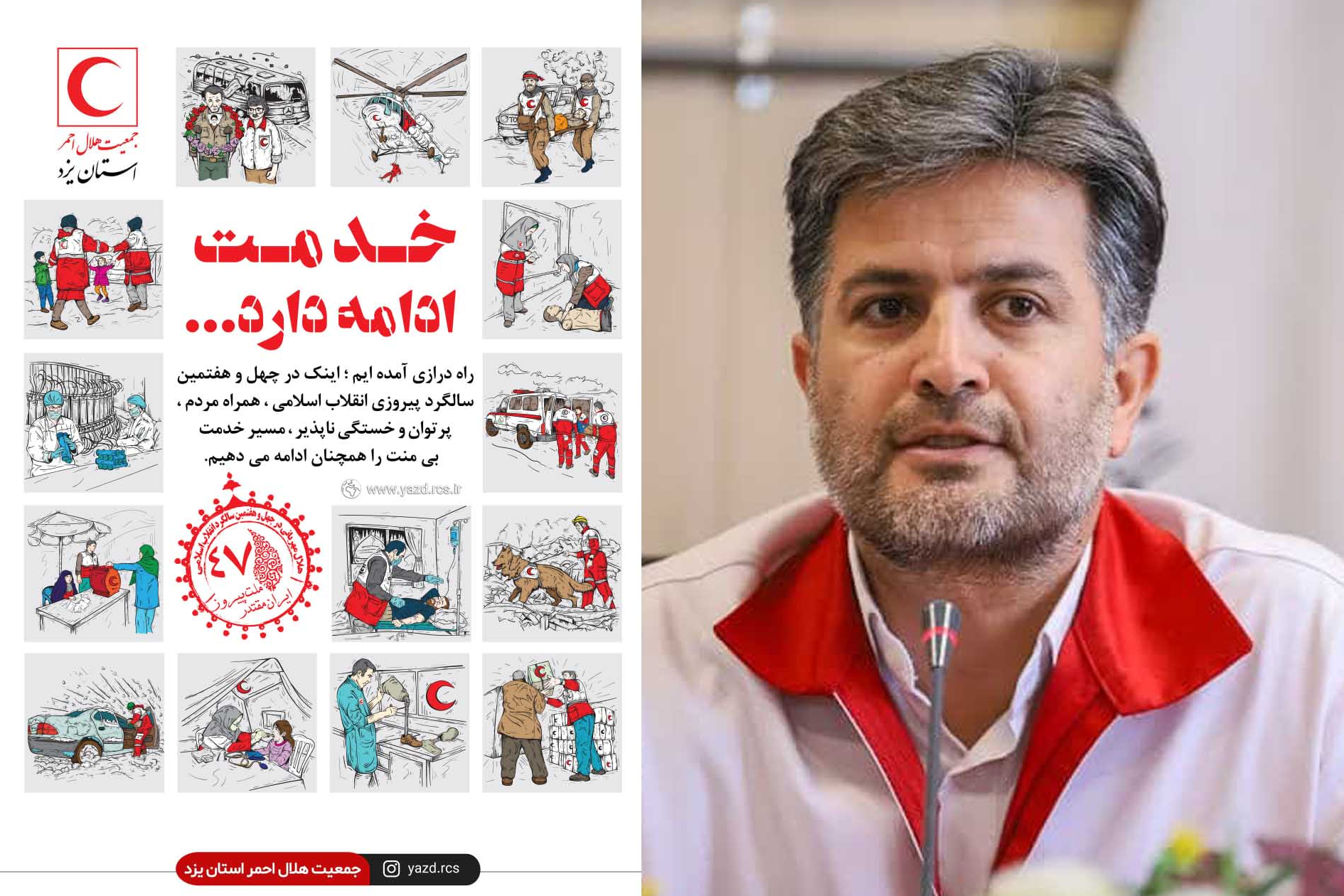 مدیرعامل جمعیت هلالاحمر استان یزد به مناسبت دهه مبارک فجر و چهلوهفتمین سالگرد پیروزی انقلاب اسلامی، ضمن تبریک این ایام فرخنده، بر تداوم خدماترسانی بیوقفه و بیمنت این جمعیت به مردم و حضور مؤثر در تمامیبحرانها تأکید کرد.