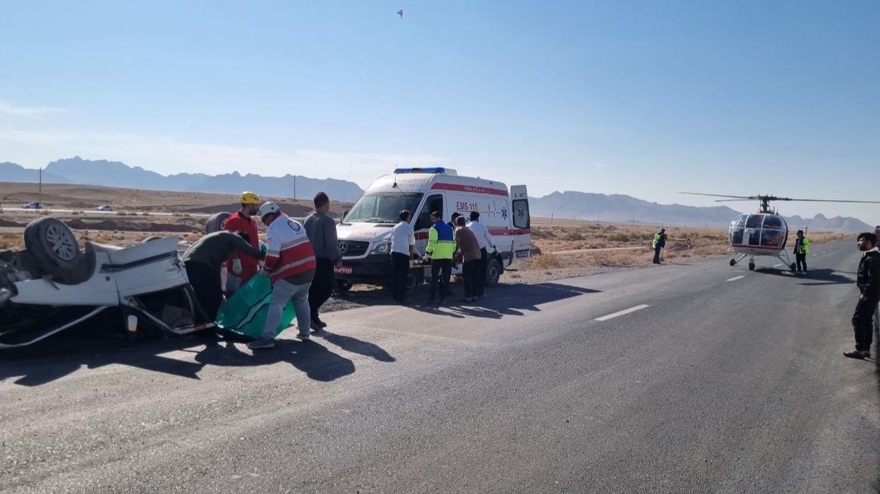 5 حادثه دیده در واژگونی خودرو سواری مزدا در محور خرانق به یزد